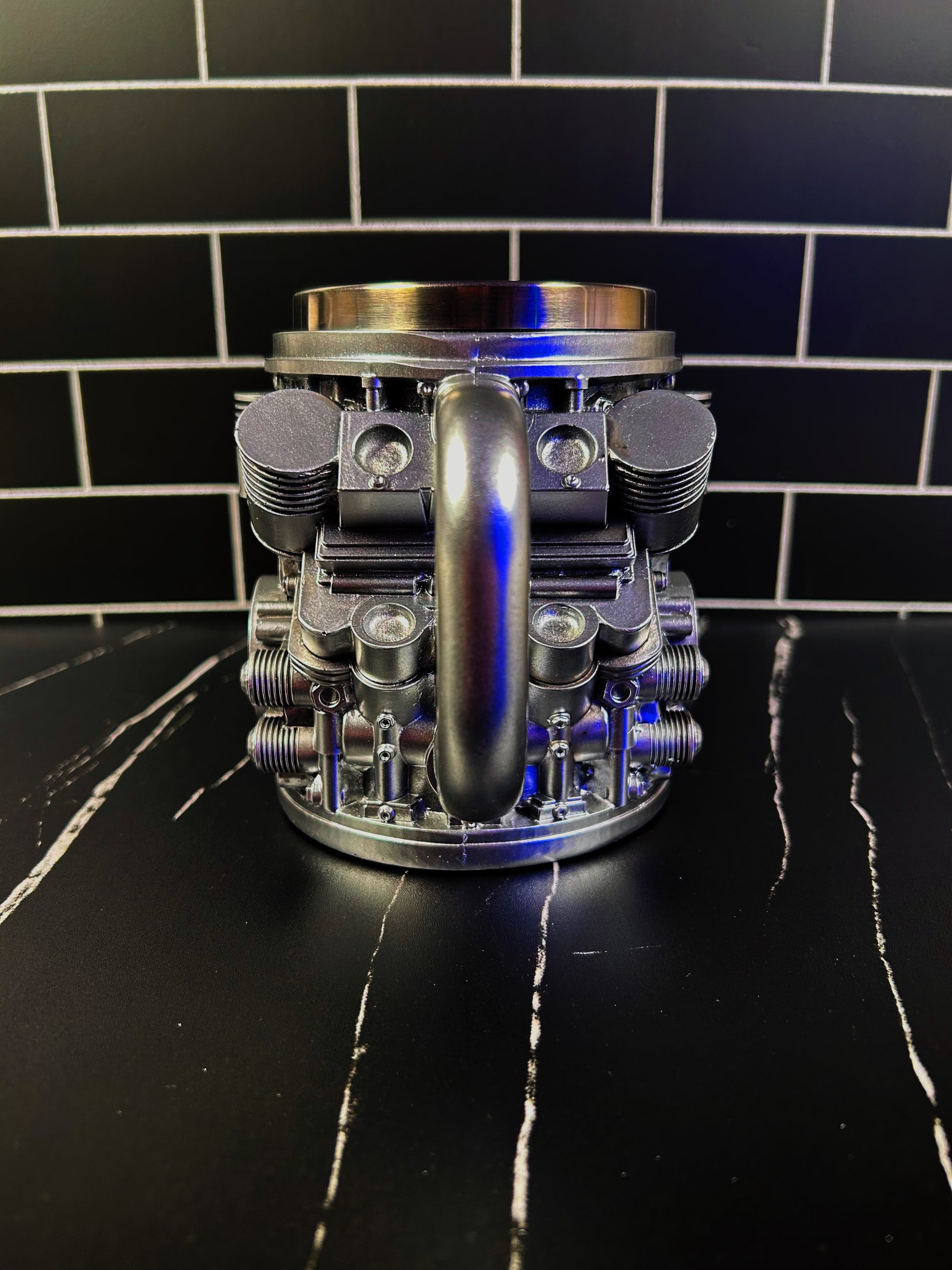 Rev up your mornings with this 15oz V8 Mug a bold blend of stainless steel interior and a detailed resin exterior, built for car enthusiasts. Engineered for durability, this mug weighs about 1–1.5 lbs, giving it a solid, premium feel. Measuring roughly 4.5–5 inches tall and 3.5–4 inches wide, it’s the perfect size for coffee, tea, or any drink that fuels your day.